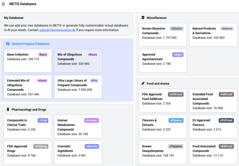 Result exploration in METIS has been further optimized. Additional structure candidates now load automatically while scrolling through peak results. A new filter allows users to focus on specific result sources — whether they originate from METIS AI, internal databases, or virtual reference libraries.